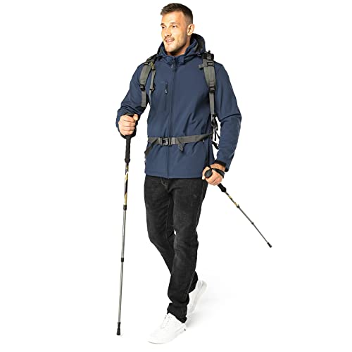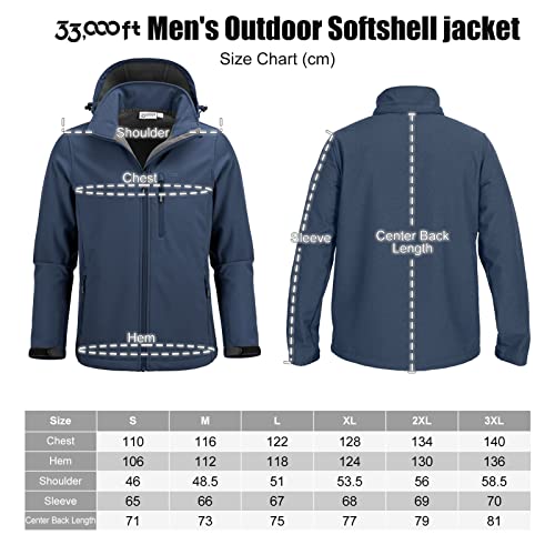 33,000ft Giacca softshell da uomo, impermeabile, antivento, in pile caldo, foderata, antivento, funzionale, per escursioni, bicicletta, campeggio, blu navy, S