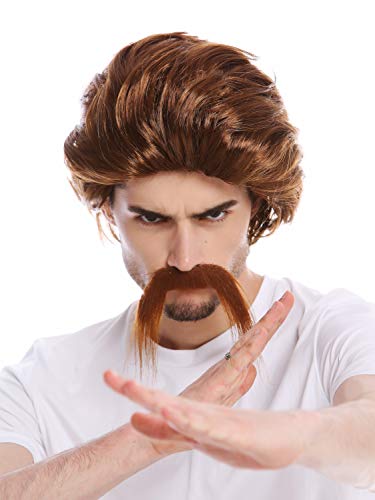 WIG ME UP - 0025-ZA6A Parrucca Barba Uomo Baffi Lunghi Gallo Germano Bardo Poliziotto Cop Anni 70 Castano