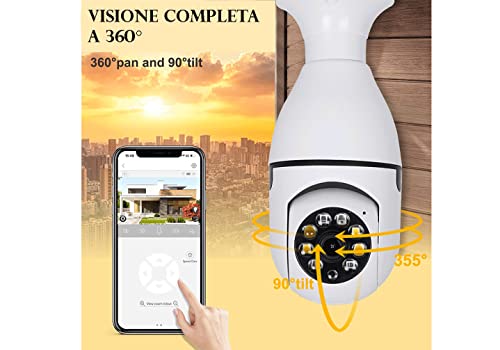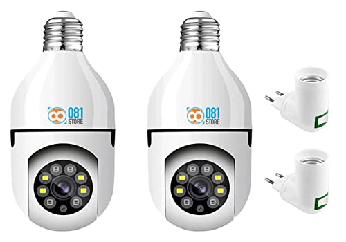 081Store - 2 PEZZI Telecamera wifi interno senza fili, Telecamera a forma di Lampadina 1080P E27 con WiFi a 2,4 GHz APP YOOSEE, telecamere Wireless a 360° con Visione Notturna + 2 portalampade