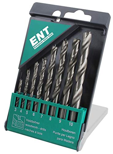 ENT 09248 Set di 8 Punte per Legno HSS - 3-10 mm - Rettificato Punte Elicoidali per Legno HSS - Punte Trapano Legno - Punte Legno Professionali