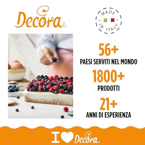 SOSTENIBILITA' - Decora dimostra un forte impegno per la sostenibilità ambientale, avendo installato un impianto fotovoltaico nella sua sede che riduce le emissioni di anidride carbonica di oltre 10.000 Kg all'anno. I prodotti Decora sono caratterizzati da un'anima "green", realizzati con materiali riciclabili, compreso il packaging, per il quale si è scelto di usare inchiostri a base vegetale, garantendo sicurezza alimentare e carta certificata FSC, da foreste ben gestite.