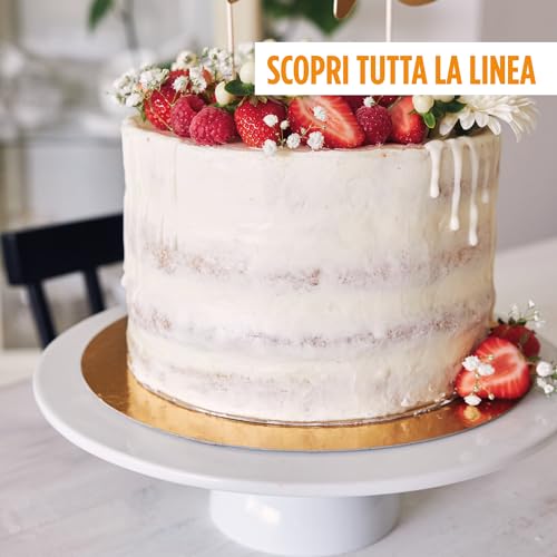 LINEA SOTTOTORTA DECORA - Il sottotorta, noto anche come base per torte o piatto da torta, assume un ruolo di grande importanza nell'universo culinario delle torte. La sua funzione va ben oltre il semplice supporto fisico. Questa componente è essenziale per garantire la stabilità e l'integrità strutturale delle torte, soprattutto quando si tratta di torte a più piani o con strati densi. Offre una superficie solida su cui collocare la torta, evitando che si deformi o si afflosci.