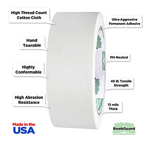 1-1/2 White Colored Premium-Cloth Book Binding Repair Tape | 15 Yard Roll (BookGuard Brand) by Bookguard