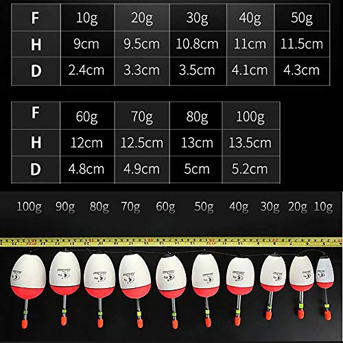 10-100g galleggiante da pesca EVA galleggianti luminosi esche da pesca per pesca in mare carpa Tackle, 10 misure a scelta