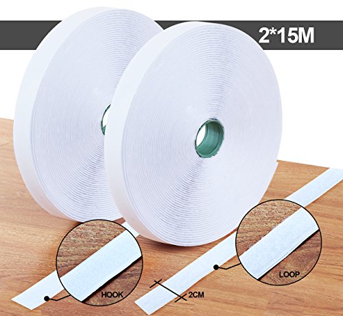 20 mm x 15 m Nastro Autoadesivo: Adesivo forte per tessuto composto da ganci e anelli, strappare o attaccare in qualsiasi momento dopo l'installazione. Non c'è più bisogno di praticare fori sul muro! Sostituto Ideale Per Viti O Bulloni.