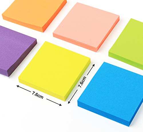 1000 Foglietti Adesivi per Appunti, misura 76 x 76 mm, in Colori Fluo Assortiti, Removibili, per Ufficio e Studio, 10 Blocchi di 10 Colori confezionati singolarmente