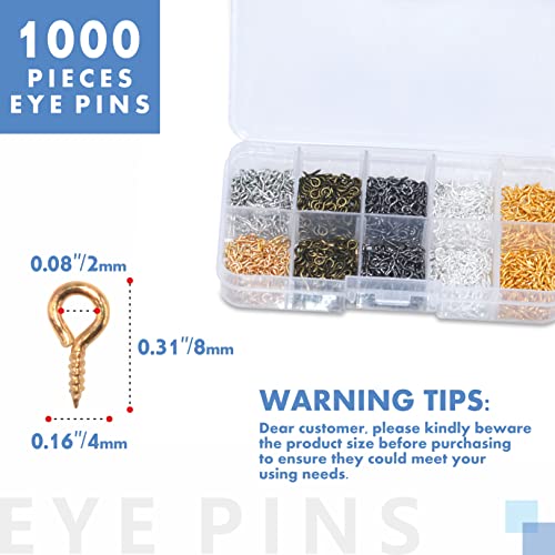 1000 piccoli occhielli a vite, mini-occhielli a vite, autofilettanti, per ganci o bottiglie con tappo in sughero e creazione di gioielli fai da te, 6 colori (dimensioni: 4×8 mm).