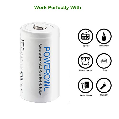 10000mAh Batterie Ricaricabili D,POWEROWL Pile Ricaricabile Stilo D Torcia D HR20 Mono,Confezione da 2 Pezzi (1200 cicli, 1,2 V, Ni-MH)