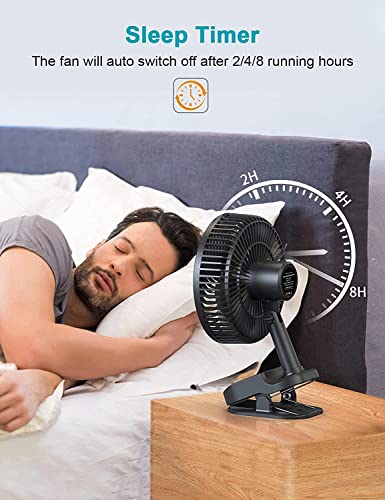 10000mAh Ventilatore a Batteria Oscillante con Clip, Ventola Pile da 20cm Ricaricabile con 4 Velocità/Timer, Morsetto Robusto e Gancio per Tenda da Campeggio, Tapis Roulant, Carrello da Golf