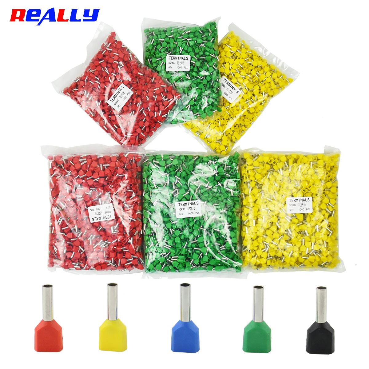 1000Pcs Wire Ferrule End Double-Wire Tube-Type Insulated Crimp terminal Wire Connectors TE0508 7508 1008 1508 2510 4012