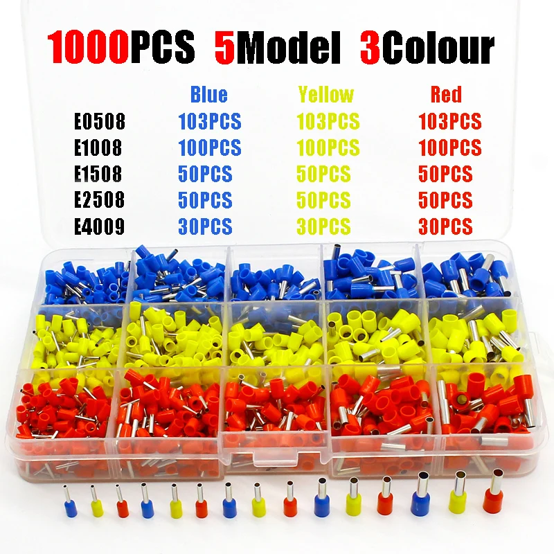 1000pcs/lot Bootlace cooper Ferrules kit set Wire Copper Crimp Connector Insulated Cord Pin End Terminal
