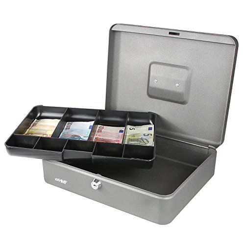 HMF 10019-09 Cassetta Portavalori con Vassoio Porta Monete e Banconote 30 x 24 x 9 cm, argento