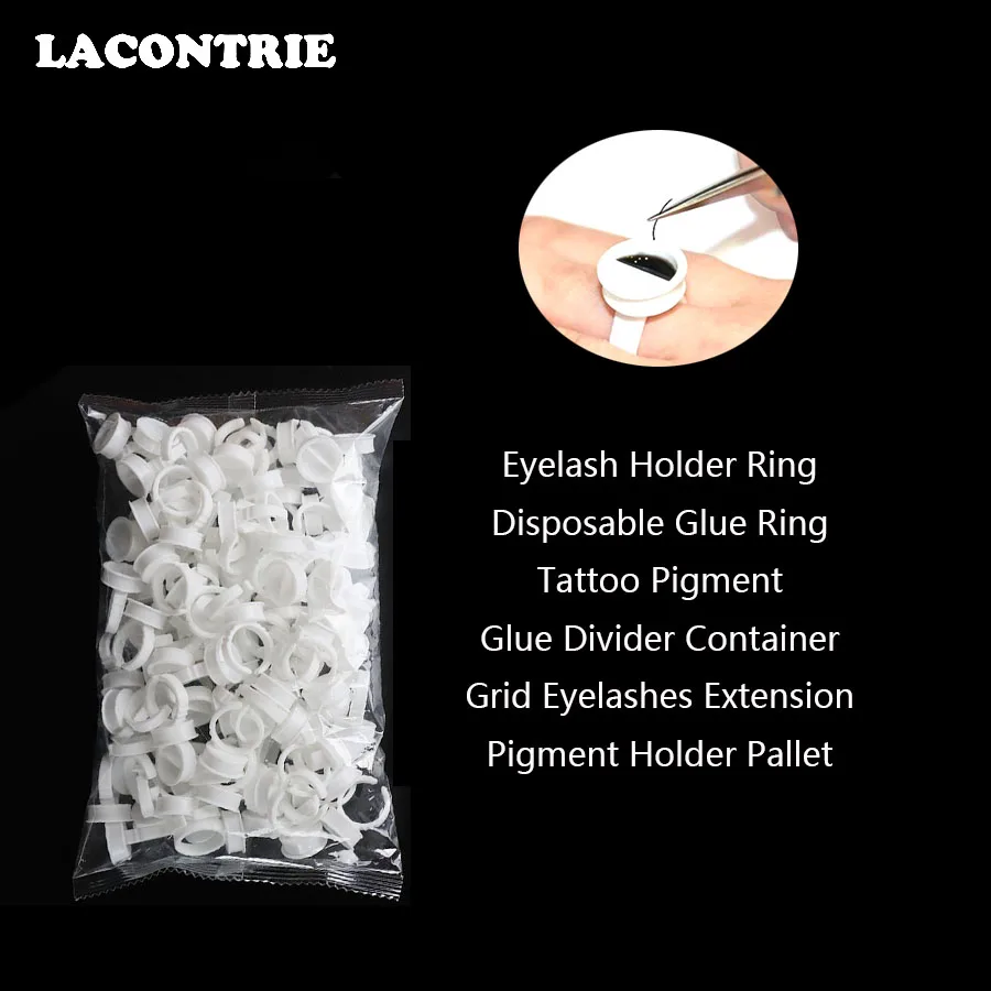 100/200 pcs Eyelash Holder Ring for women DIY Eyelashes Extension Disposable Holder Ring Tattoo Pigment Holder Ring Kit Set