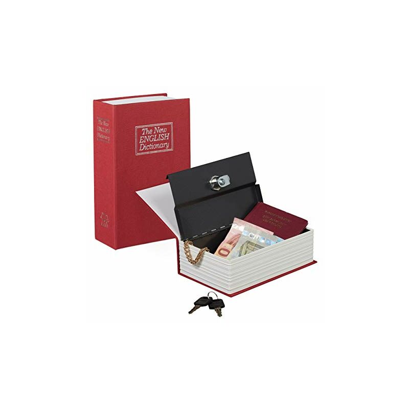 Relaxdays 10020798_47 Libro Cassaforte con Chiavi, Piccolo, Dizionario Tascabile, Acciaio, HxLxP: 18 x 11,5 x 5,5 cm, Rosso, Metallo, 5.5x11.5x18 cm 5.5x11.5x18 cmColor: Rosso
