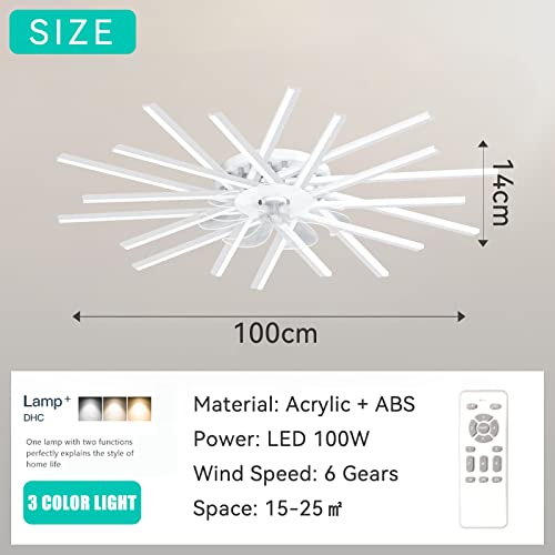 100cm Lampadario Ventilatore con Telecomando Moderno Ventilatore da Soffitto con 20 Luci Silenzioso Estate Inverno Modalità Dimmerabile Reversibile DC Plafoniera con Ventilatore, Oro