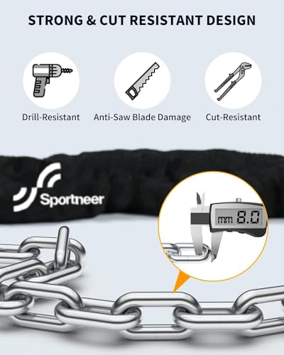 100CM * 8MM Lucchetto Bici Catena, Sportneer Catena Bicicletta con 2 Chiavi, Bicicletta Antifurto in Acciaio Temprato, Alta Qualità Antifurto Moto/Lucchetto Moto per Varie Biciclette/Motocicli