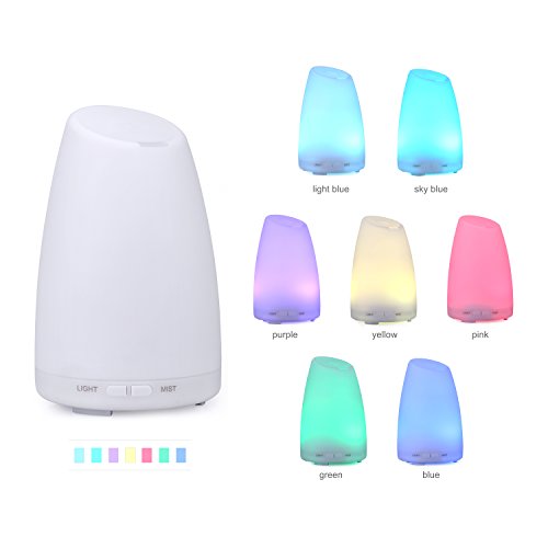100ml Umidificatore Oli Essenziali, Alfloia Aroma Diffusore Elettrico ad Ultrasuoni Foschia Fredda 7 Colori LED, Purificatore d'Aria
