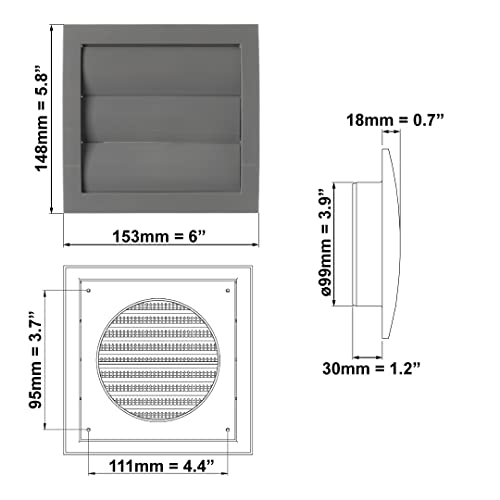 Ø 100mm Griglia di Ventilazione con Zanzariera - Griglie D'Aerazione con Alette a Gravità - Plastica ABS Grigio