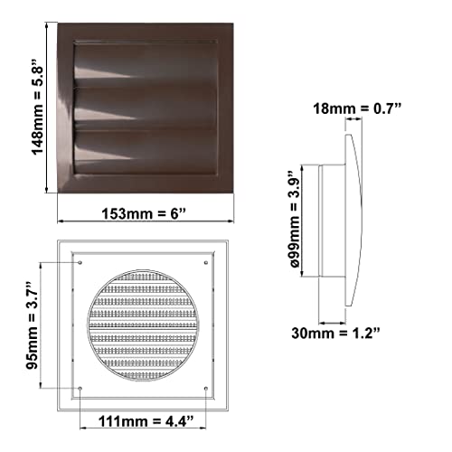Ø 100mm Griglia di Ventilazione con Zanzariera - Griglie D'Aerazione con Alette a Gravità - Plastica ABS Marrone