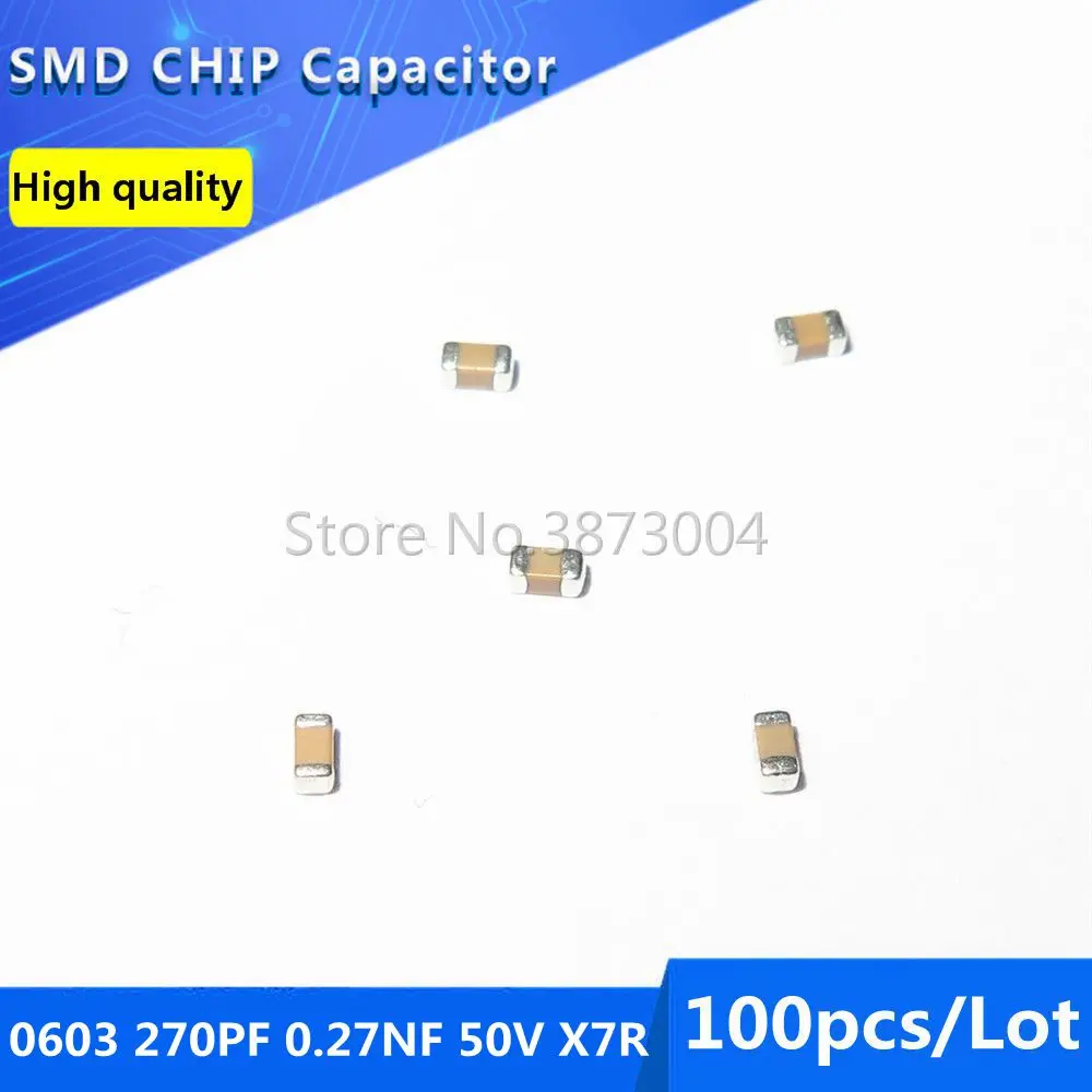 100pcs 0603 270PF 0.27NF 50V X7R 10% SMD Chip Capacitor