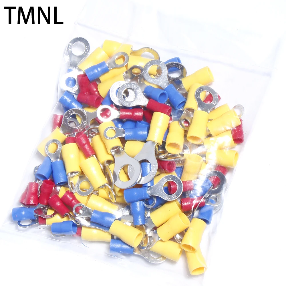 100PCS Mix RV1.25/2/5.5 Crimped Connectors Ring Insulated Wire Electrical Terminal Cable Round Cold pressing Crimp O shaped plug