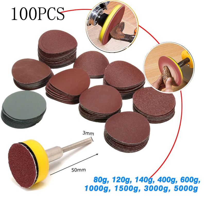 100pcs 25mm/1inch Sandpaper + 1pc 1inch Hook Loop Backer Plate 1/8inch Shank + 1pcs Loop Sanding Pad Abrasives Mixed Polishing