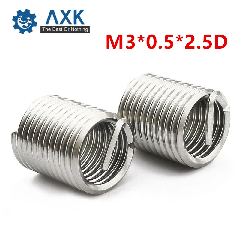100pcs M3*0.5*2.5DWire Thread Insert Stainless Steel 304 Wire Screw Sleeve, M3 Screw Bushing Helicoil Wire Thread Repair Inserts