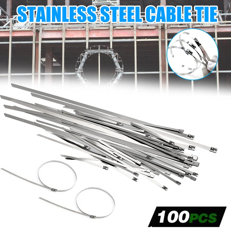 100PCS Multi-Purpose Locking Cable Metal Zip Ties Stainless Steel Self Locking Zip Tie KI
