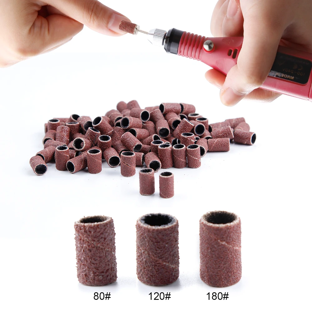 100pcs Nail Sanding Bands Apparatus for Manicure 80"120"180" Nail Electric Polishing Milling Machine Accessories Drill Bits File