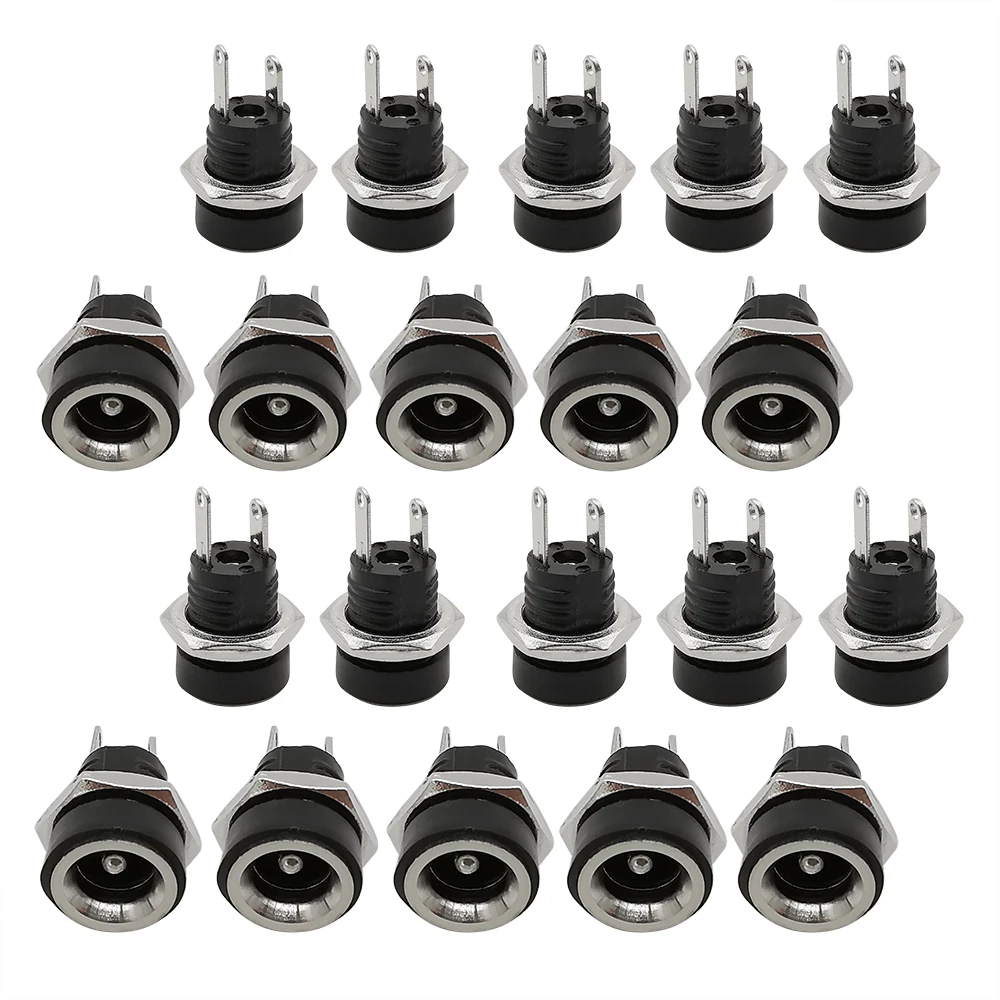 100Pcs 5.5 x 2.1mm DC Power Socket Jack Female Threaded Mount Adapter with Hexagonal 2 Pin DC 5.5x2.1 Electrical Plug Connector