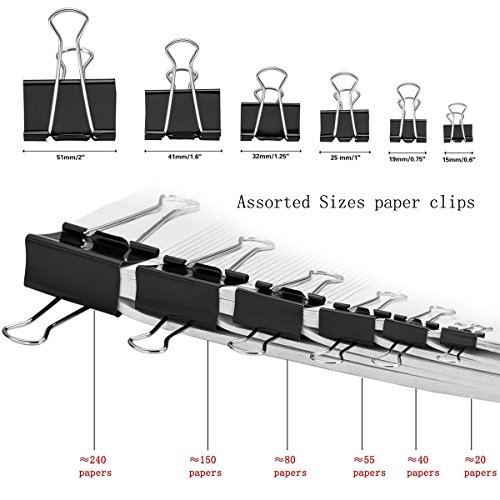 Ordina Dimensioni: il nostro pacchetto viene fornito con 6 dimensioni per soddisfare le vostre esigenze diverse, raccoglitori clip includono: 5,1 cm/51 mm (5 Pack), 4,1 cm/41 mm (5 Pack), 3,2 cm/32 mm (5 Pack), 2,5 cm/25 mm (15 Pack), 1,9 cm/19 mm (25 Pack), 1,3 cm/15 mm (45 Pack), 2,8 cm/28 mm carta clip (50 pezzi).
