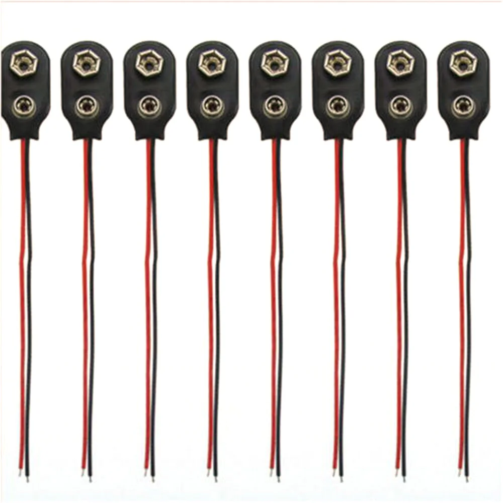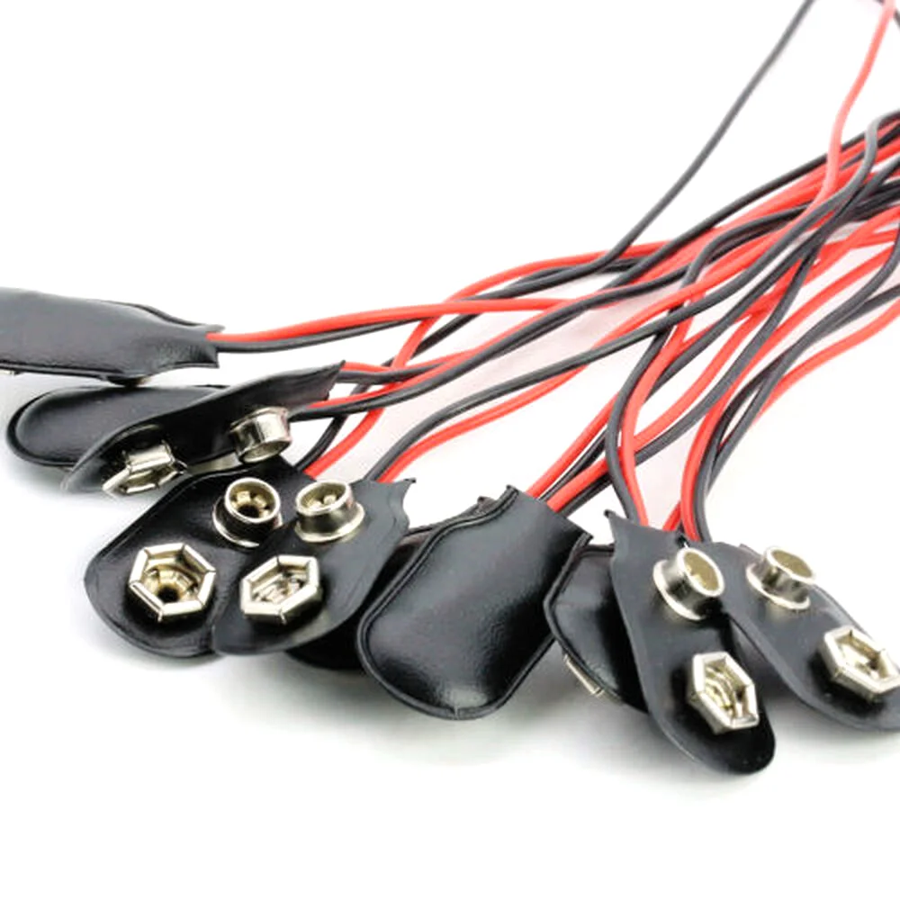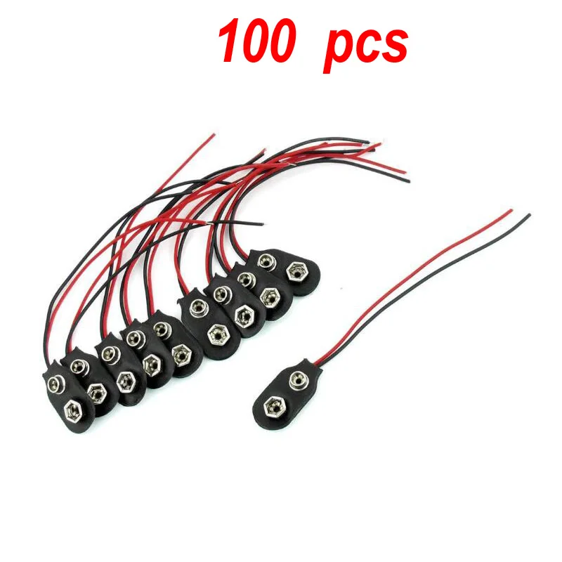 100pcs Snap 9V (9 Volt) Battery Clip Connector I Type Black w Cable LW Battery Snap Wire Cable Lead Holder Adapter 150mm