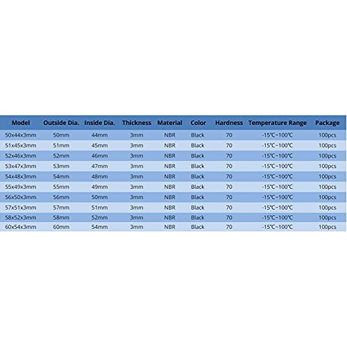 100pcs spessore 3mm nero gomma nitrile 50-60mm Diametro esterno NBR O-ring Guarnizioni Guarnizioni Rondella, 50x44x3mm