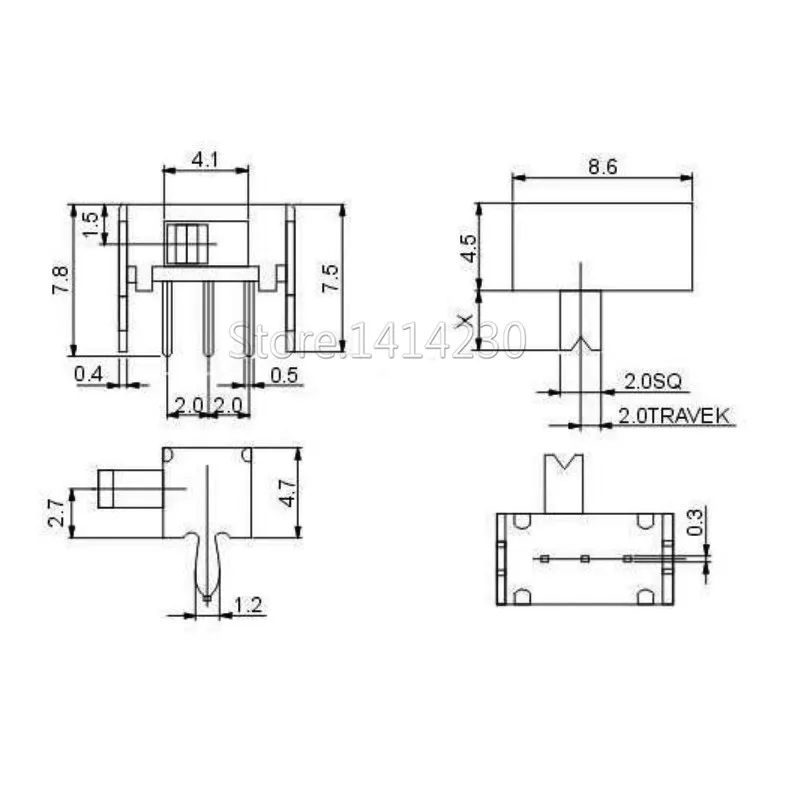 100Pcs Toggle switch SK12D07VG3 stents Small toggle switch/3 mm high Miniature Slide Switch Side Knob