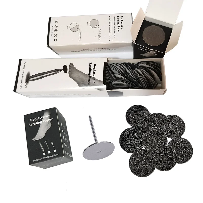 100pcs/BOX Discs Pads Pedicure Foot Rasp Files Cuticle Callus Remove Tool 1PCS Metal Shaft Replaceable Sandpaper