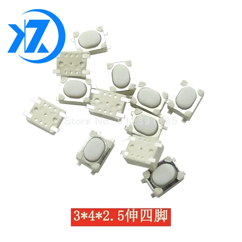 100pcs/lot Micro Button Tact Switch SMD 4Pin 3X4X2.5MM White Tactile Tact Push Button Micro Switch Momentary 3*4*2.5mm