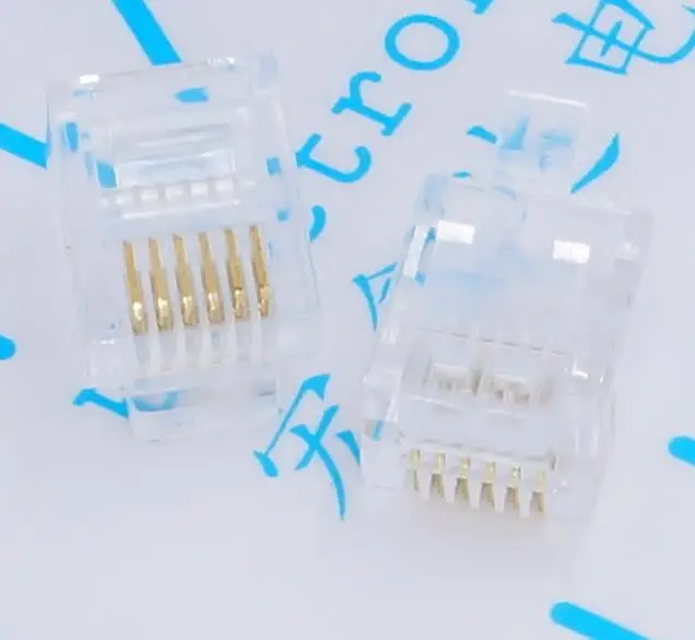 100pcs/lot RJ11 crystal head Six core telephone line crystal head 6 core CNC crystal head Gold plated 6P6C crystal head