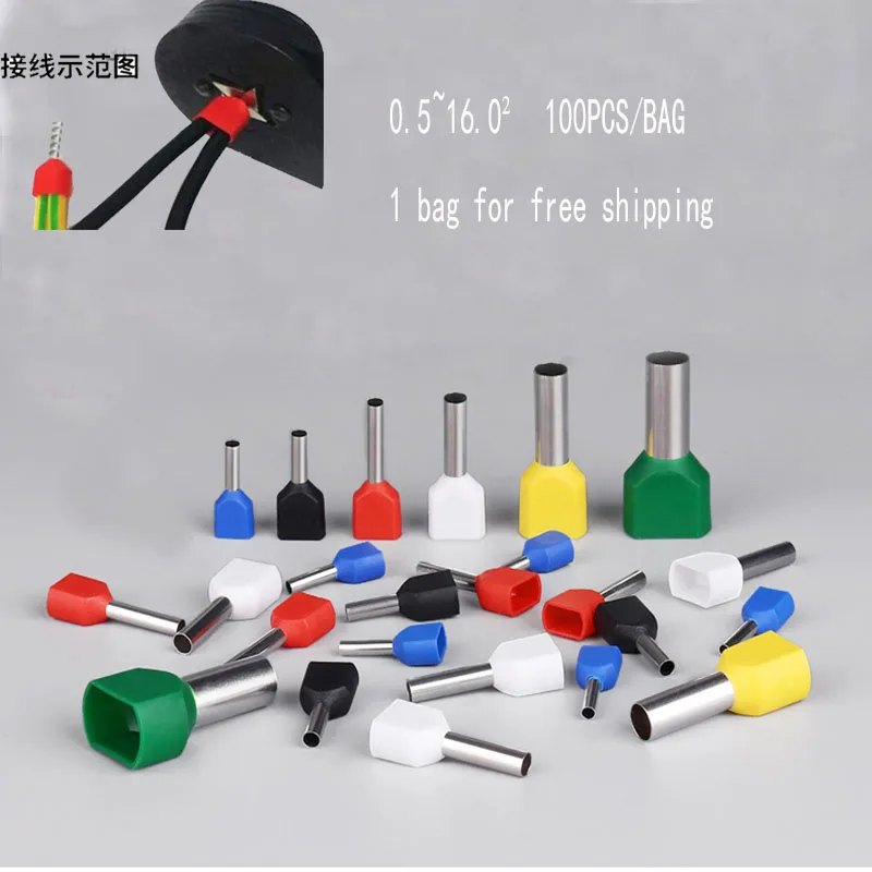 100pcs/lot TE1010 2X1.0mm2 Bootlace cooper Ferrules kit set Wire Copper Crimp Connector Insulated Cord Twin Pin End Terminal