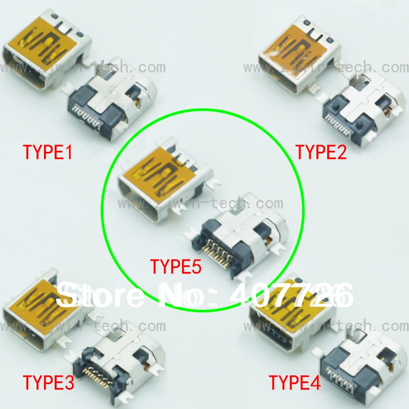 100pcs/lot 5 types of Mini USB Micro power charging socket 10Pin female connector