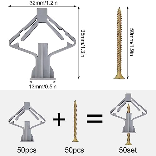 100Pezzi Tasselli di Vite Fissaggi a parete (50 Tasselli + 50 Vite Autofilettanti), Tasselli per Pareti a Cavità per Cartongesso Tasselli di Espansione Autofilettanti per Cartongesso, Mattone Forato