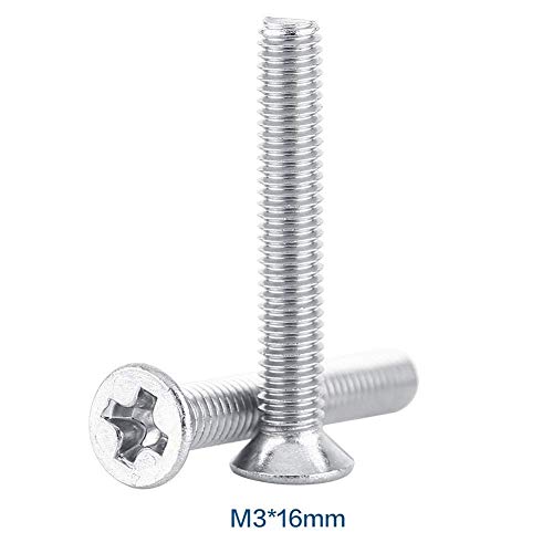 100Pz M3 Bullone a Vite a Testa Piatta Fissaggio in Acciaio Inox SS304, Filettatura Completa, Finitura Semplice(M3*16)