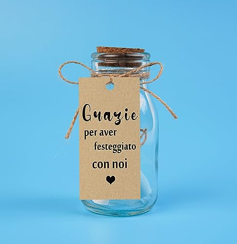 100 Etichette per Bomboniera Ringraziamento Ideali come biglietti per il Sacchetto di Confetti. Perfetti per Varie Occasioni: Matrimonio, Battesimo, Nascita, Compleanno.