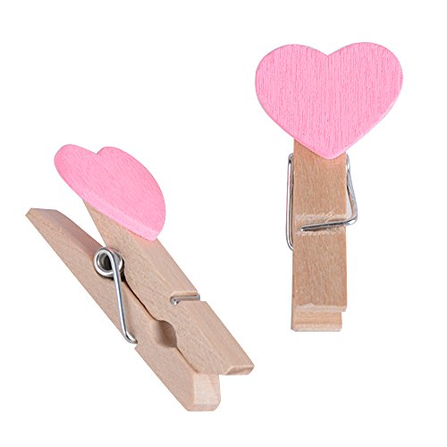100pz Mini Mollette Legno Mollettine Decorative Cuore Rosa per Foto Biglietti Scrapbooking Matrimonio
