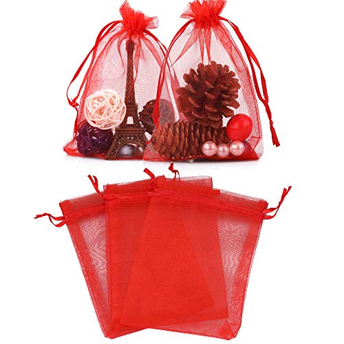 100pz Sacchetti Regalo in Organza Grandi 10x15cm Borse Organza con Coulisse, per Matrimonio Festa Favore, Caramella, Gioielli (Rosso)