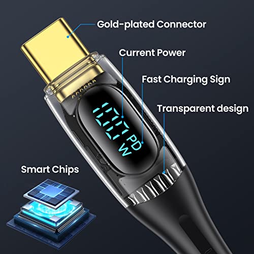 【Visibile Velocità di Ricarica Rapida】- Non c'è dubbio che si stia caricando velocemente, lo schermo LED in tempo reale di questo cavo di ricarica da USB C a Multi vi mostrerà l'esatta potenza di ricarica. Molto veloce alla vista. Nota: la velocità di ricarica effettiva di questo cavo di ricarica rapida USB-C dipende dal dispositivo e dal caricabatterie utilizzato.