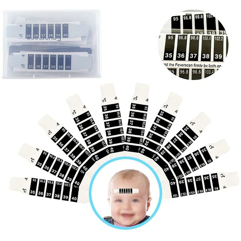 10/20 pezzi Termometro frontale Scansione della febbre Controllo della temperatura per bambini e adulti. Taglia: 90 x 16 mm Colore principale: Bianco Nero Materiale: PET Intervallo di temperatura: 35(95) ~ 40(104) Nessuna batteria richiesta, infrangibile, comprimibile, pieghevole. Facile da usare, attaccare o mettere sulla fronte del bambino. < p>Ottieni il risultato in breve tempo (15 secondi). Non mercurio, non tossico, sicuro per la salute e l'ambiente. Formato tascabile, può essere utilizzato a casa o in viaggio. I genitori possono monitorare continuamente la temperatura corporea dei bambini e non influiscono sul sonno dei bambini. Come utilizzare il termometro frontale: Tenere premuto il termometro saldamente a entrambe le estremità e premere piatto contro il centro di una fronte asciutta. Tenere in posizione per almeno 15 secondi. Leggere il termometro mentre è sulla fronte. (Usa uno specchio per leggere il termometro su te stesso). Guarda le caselle e controlla il colore. Il