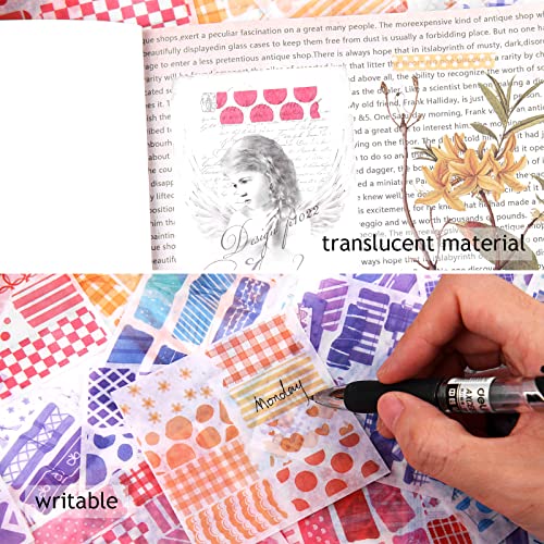 [Materiale di carta Washi]: Sono materiali di carta washi su cui puoi scrivere, non sanguinano o sbiadiscono, sottili e in qualche modo trasparenti, abbastanza appiccicosi da rimanere fermi.