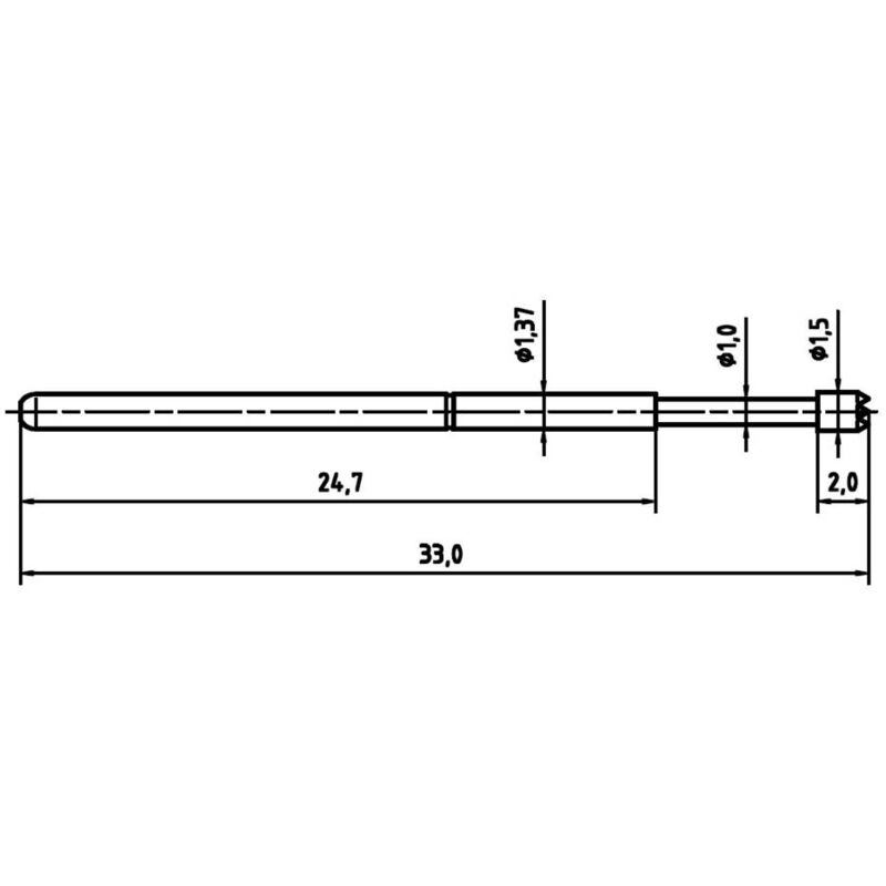 Dettagli tecnici Corrente nominale 3 A Forma della testa (contatti a molla) C Tipo prodotto Puntale di misura Ø perno 1.37 mm Resistenza di passaggio: ≤25 mΩ Punta di prova di precisione per test circuiti stampati Punta di prova di precisione a introduzione singola con contatto a molla per gli assemblaggi e i test dei circuiti stampati. Incluso nella consegna null Requisiti di sistema null Note Codifica del tipo: xxxx (serie) - xx (forma della testa) - x.xN (pressione di contatto) - xx (finitura) - xx.xx (Ø testa in mm/materiale della testa) Finitura: AU = oro, RH = rodio, NI = nichel Materiale della testa: M = ottone, C = berillio. Illustration similar.