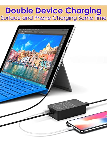 USB port: 5V-1.5A 7.5W. Sostituzione per Microsoft Surface Book 2 3, Surface Pro X 7 6 5 4 3, Surface Laptop 4 3 2 1 and Surface Go, 102W, 65W, 44W, 36W, 24W 15V Surface Chargers.