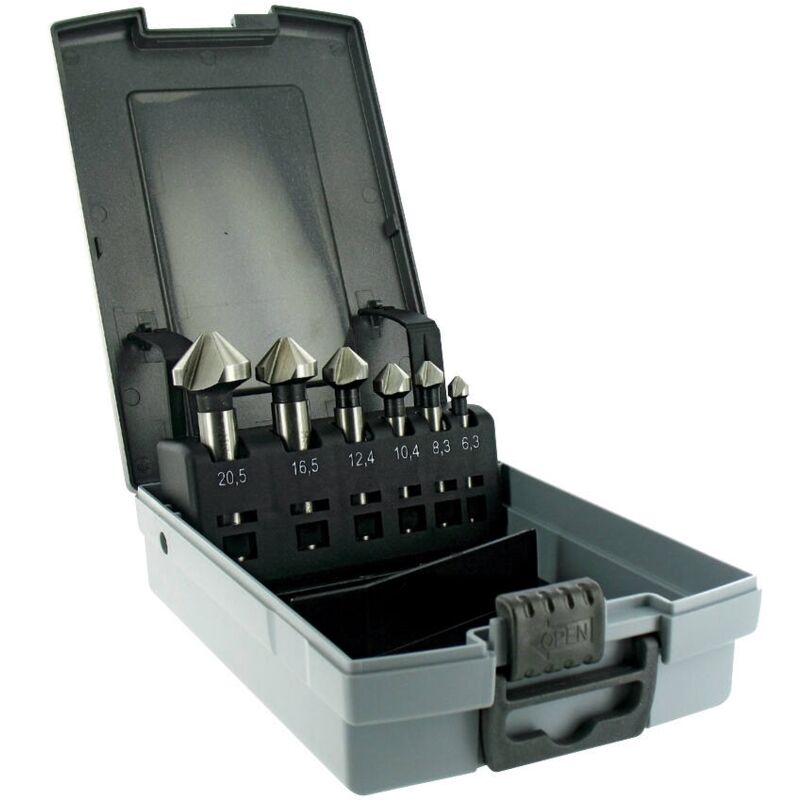 6 Punte a svasare a 90° HSSE5 DIN335C Ø da 6,3 a 20,5 mm Punta a svasare veloce e resistente per acciai, acciai inossidabili, acciai resistenti, ghise e alluminio. Consente un utilizzo versatile in macchine elettroportatili e macchine utensili CNC. Per uso generale in metalli fino a 1200 N/mm². Consente un'ottima distribuzione delle forze di taglio ed una finitura superficiale impeccabile. Per realizzare smussi a 90° per incorporare teste di viti e/o rivetti.